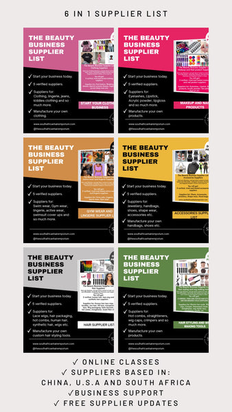 This combo combines all 6 supplier lists on our website (valued at R12,000) into one discounted package — plus amazing extras :